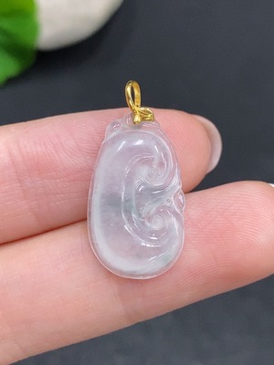 F34968279 Jadeite Ruyi Pendant with 18K Gold Clasp, Total Weight Approximately 1.2g