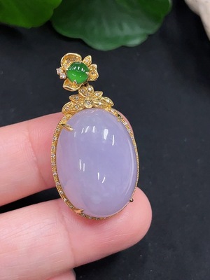 F36281541 Jadeite Inlaid Pendant 18K Gold Total Weight Approx. 8.6g (With Diamond Accents)