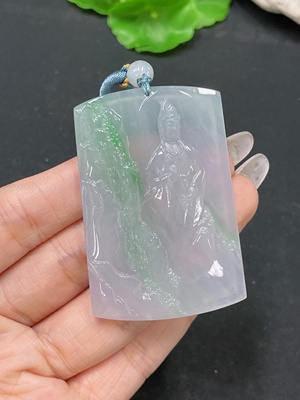 F36325307 Jadeite Landscape Guanyin Pendant Total Weight Including Rope Approx. 84.3g