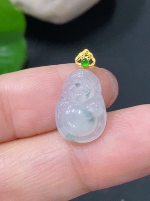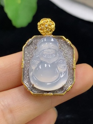 F36329041 Jadeite Maitreya Inlaid Pendant 18k with Diamond, Total Weight Approx. 10.99g