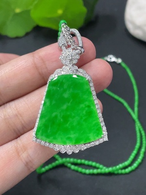 F34977483 Jadeite Plain Pendant Necklace with Chain, approx. Card 1.7mm, 18K Gold Setting with Diamond Accents, Total Weight approx. 16.9g