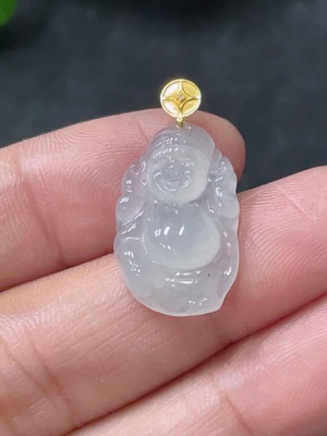 F35114196 Jadeite Maitreya Inlaid Pendant 18k with Diamond, Total Weight Approx. 4.6g