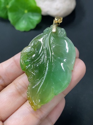 F28265360 Jadeite Leaf Pendant with 18K Gold and Diamond Accents, Total Weight Approximately 21.53g