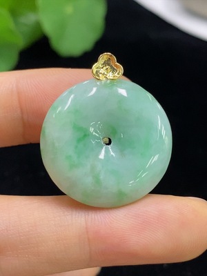 F34042629 Jadeite inlaid pendant, no imprint, surface gold content tested at 18k, total product weight approximately 3.09g
