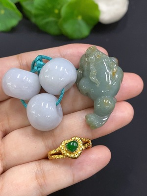 F19180606 Jadeite Pendant with Ring and Beads Sell as a Lot Non-Gold Inlaid