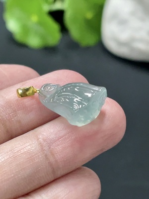 F35159632 Jadeite Leaf Pendant with 18k Gold Clasp, Total Weight Approx. 0.3g