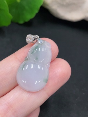 F34069473 Jadeite gourd pendant 18K gold total weight about 0.9g (with diamond inlay)