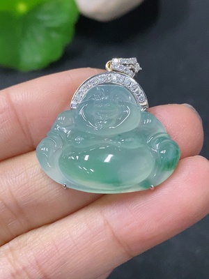 F33905389 Jadeite Buddha Pendant Set in 18K Gold with Diamonds, Total Weight Approx. 11.7g