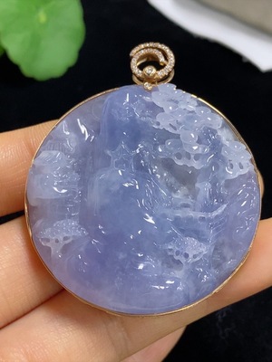 F37454710 Jadeite Landscape Inlaid Pendant 18k with Diamond Accents Total Weight Approximately 48.57g Containing Other Mineral Components