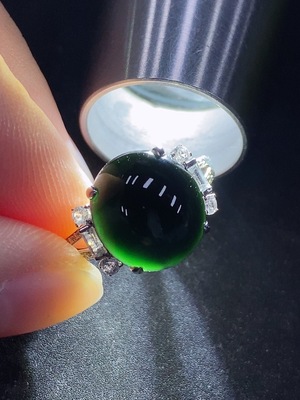 F34055833 Jadeite Cabochon Ring with 18K Gold, Size 18, Accented with Diamonds (Minimal Side Stones Only), Total Weight Approx. 3.71g