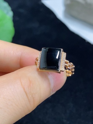 F38527140 Jadeite Inlaid Ring 18k with Diamond Accents Size 14 Total Weight Approx. 3.58g
