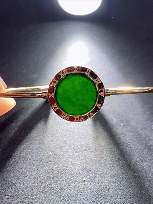 F27145522 Jadeite inlaid bangle 18k gold total weight about 5g adjustable size