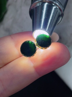 F38514912 Jadeite inlaid earrings pair Au72% total weight approx.1.5g (including ear stoppers weight)