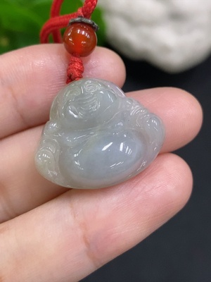 F35126231 Jadeite Buddha pendant with a total weight of approximately 7.4g including the cord (accompanying beads are non-A)
