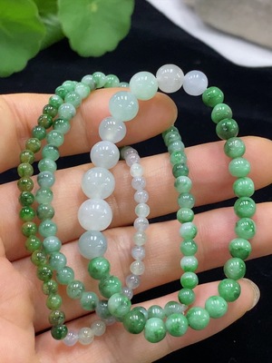 F35138684 Jadeite Bead Bracelet with Other Mineral Components and Colored Polishing Powder, Total Weight Approximately 54.57g, Size About 12.7mm