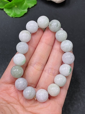F35138684 Jadeite Bead Bracelet with Other Mineral Components and Colored Polishing Powder, Total Weight Approximately 54.57g, Size About 12.7mm