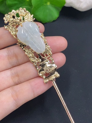 F28232057 Jadeite Leaf Inlaid Hairpin Non-Gold Inlaid Total Weight Approximately 12.9g