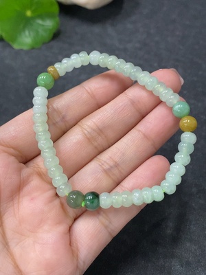 F34030304 Jadeite Bracelet, Maximum Bead Size Approx. 6.5mm, Total Weight Approx. 11.14g, Undetermined Color Origin of Yellow Parts, Containing Other Mineral Components