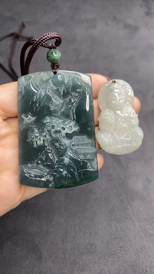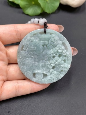 F19147820 Jadeite Landscape Pendant Containing Color Polishing Powder/Other Mineral Components Total Weight 55.404g