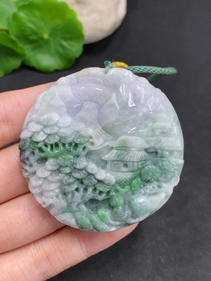 F34968376 Jadeite Landscape Pendant with Cord Total Weight Approx. 60.4g (Including Other Mineral Components)