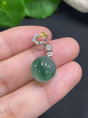 F37354514 Jadeite Bead Pendant 18K Gold Size 11.7mm Approx. Total Weight 3.8g (with Diamond Accents)