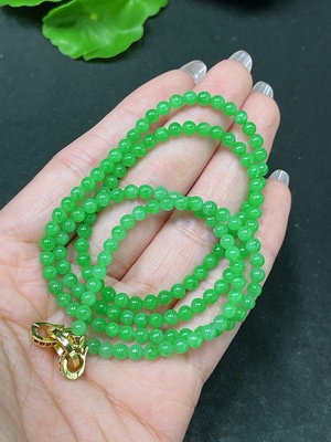 F1259139 Jadeitebead necklace, some beads with veins/cracks, approx. 6mm Jade平安扣 pendant, some with veins/cracks (注:"平安扣"作为特定文化概念通常保留拼音"Ping An Kou"或译作"safety buckle pendant",但根据简洁的珠宝行业惯例,此处采用"Jadeitependant"的译法。如需要强调文化术语可调整为"JadeitePing An Kou pendant"。裂纹译为"veins/cracks"是珠宝行业对天然纹理和瑕疵的常用表述。)