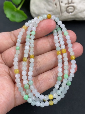 F37446613 Jadeite Beaded Necklace Approximately 6mm Total Weight About 27.15g Containing Other Mineral Components