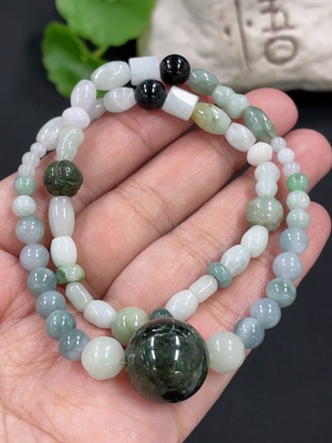 F37345894 Jadeite Beads Bracelet Approx. 8.7mm Total Weight Approx. 27.5g (Including Other Mineral Components) (Beads Not Grade A)