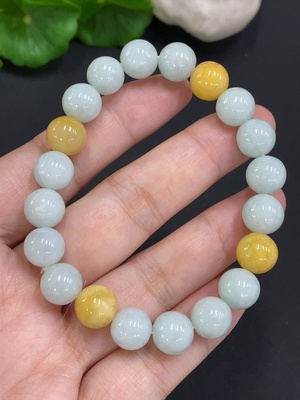 F34964071 Jadeite Bracelet Approx. 10.7mm Total Weight Approx. 38.88g Yellow Beads Color Origin Undetermined