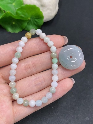 F35136929 Jadeite Bracelet/Ping An Kou Pendant Sell as a Lot with Non-A Grade Beads Non-Gold
