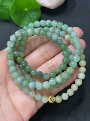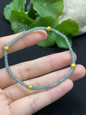 F35189819 Jadeite Bracelet Approx. 3mm Beads Non-Gold Inlaid Total Weight Approx. 3.49g