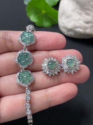 F35145827 Jadeite Inlaid Bracelet Earring Sell as a Lot Non-gold