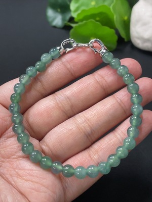 F32778734 Jadeite Bracelet Approx. 3.8mm Beads Total Weight Approx. 16.26g Non-Gold Color Origin Undetermined