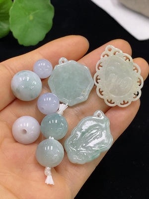 F35094624 Jadeite Beads/Fu Pendant Hangings Sell as a Lot