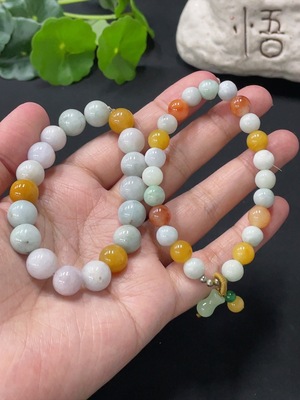 F31632615 Jadeite Bracelet Card 10.2mm approx. Red, Yellow Beads Non-A Non-Gold Inlaid