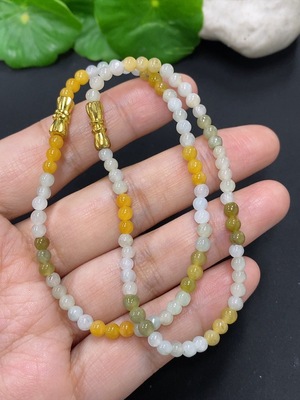 F33928779 Jadeite Bead Necklace, Approx. 5.5mm, Total Weight Approx. 31.79g, Color Origin of Yellow Part Undetermined