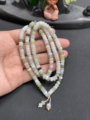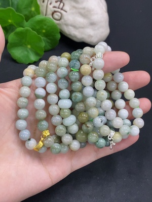 F0155016 Jadeite Bead Necklace Some Beads with Cracks 6.7mm