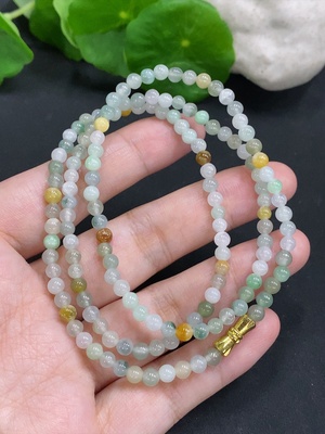 F33934199 Jadeite bead strand approx. 4mm non-gold total weight about 17.3g (yellow color origin undetermined)