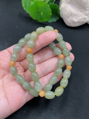 F34964060 Jadeite Bracelet Size 11/10.7mm Approx. Total Weight About 38.73g Yellow Beads Color Origin Undetermined