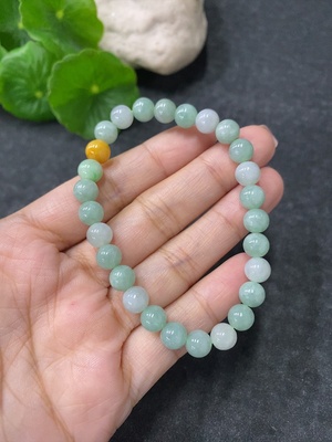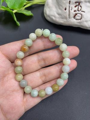 F27065165 Jadeite Bracelet Approx.7mm Total Weight Approx.17.3g (Yellow Bead Color Origin Undetermined) (Matching Beads Not Grade A)