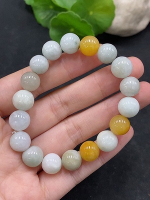F34963582 Jadeite Beads Bracelet Approx.9.8mm Total Weight Approx.30.46g Yellow Beads Non-Grade A
