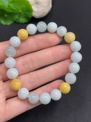 F34028599 Jadeite Beads Bracelet Approx. 9.5/10.5mm Total Weight 30.54g Non-gold Setting Yellow Beads Color Origin Undetermined