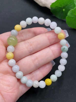 F27065165 Jadeite Bracelet Approx.7mm Total Weight Approx.17.3g (Yellow Bead Color Origin Undetermined) (Matching Beads Not Grade A)