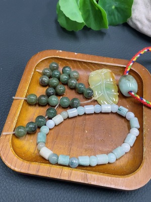 F32760503 Jadeite Pendant Bracelet Sell as a Lot Color Origin Undetermined Beads Non-Grade A Including Rough Pieces