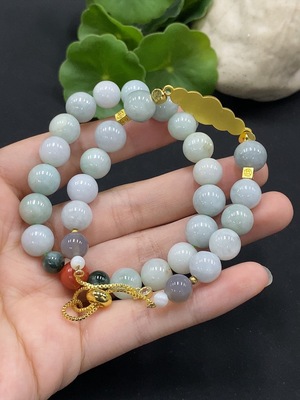 F35115039 Jadeite Bracelet with Non-A Grade Beads, No Gold Inlay