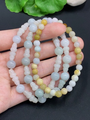 F33839181 Jadeite Bracelet + Rope, Sell as a Lot, Beads Non-Grade A