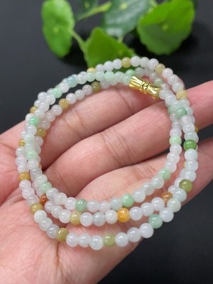 F35189685 Jadeite Beaded Necklace Approx. 6mm Non-gold Inlaid Total Weight Approx. 38.78g