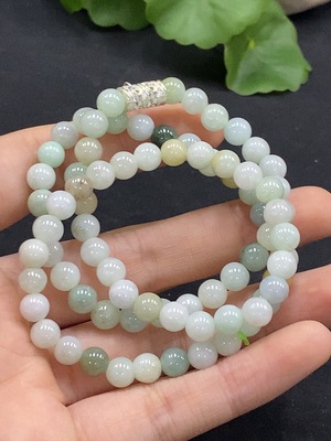 F31603977 Jadeite Bead Necklace Approx. 5.7mm Total Weight Approx. 28.62g Non-Gold Setting Color Origin Undetermined