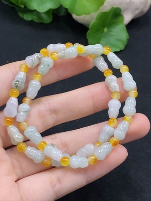 F32760509 Jadeite Bracelet Sell as a Lot Matching Beads Non-A Yellow Red Beads Non-A