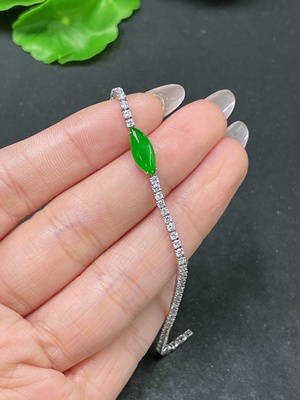 F34997950 Jadeite Bracelet 18k with Diamond Accents Only Smallest Accent Stones Total Weight Approx. 1.97g